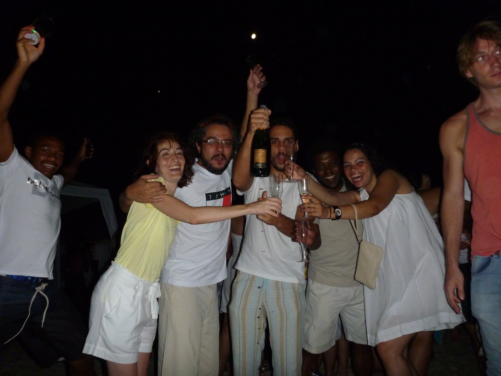 Se tem coisa mais básica que preto, no verão, é a roupa branca. Mas apesar disso e do branco ainda ser a pedida para o réveillon, o que mais vimos foi brilho, muito brilho. Mais brilho que em festas de carnaval. E estaria tudo bem, se fosse um evento noturno como outro qualquer, mas a mulherada estava na areia da praia, sentada na canga, pulando as 7 ondas com a maior dificuldade, por conta do vestido justo e cheio de paetês!!!
